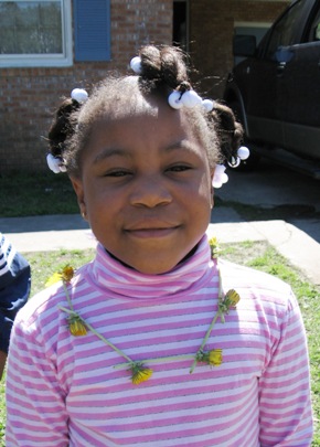 I may be revealing too much about my age, but I can’t imagine growing up without playing with dandelions at some point in my life. One of my earliest dandelion memories was when a neighbor girl held a dandelion under my chin to see if I liked butter. Since my chin seemed to glow a little reflecting the yellow blossom, she concluded that I liked butter. Somewhere along the way I learned to make a daisy chain with dandelions by making a small slit in the stem of one dandelion and passing the stem of the second blossom through it. Then repeating the process several times to make a necklace. A few years back I helped Kyra, a neighbor girl, make one. She was very proud of it. Kyra is now a college student.