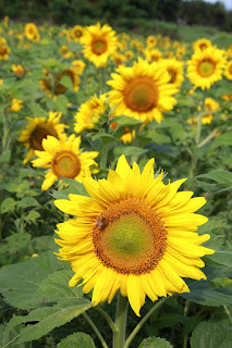 - The pollen from the sunflowers feeds the bees.